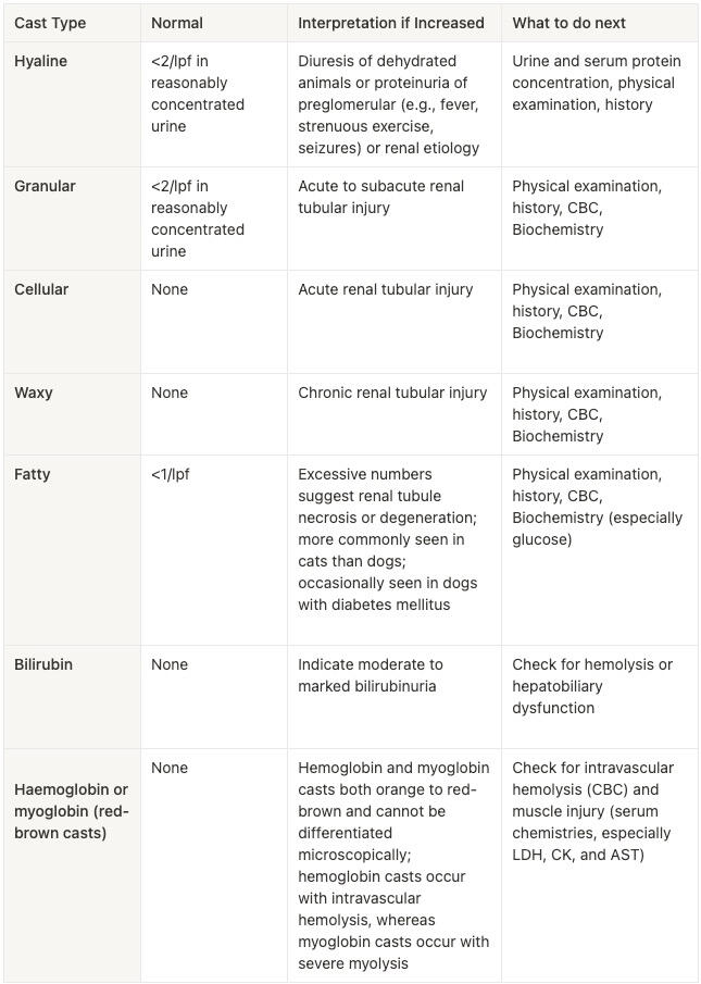 3. Record the number of each cast type per 10x low-power field (Ipf) as a range (e.g., 0-2/pt).Epithelial cells